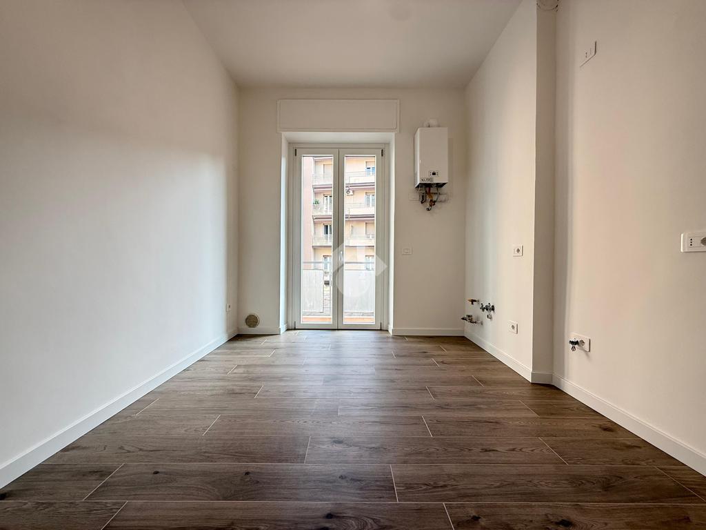 L'ingresso si sviluppa tramite il disimpegno che conduce alla cucina separata e abitabile e al luminoso soggiorno con balcone.