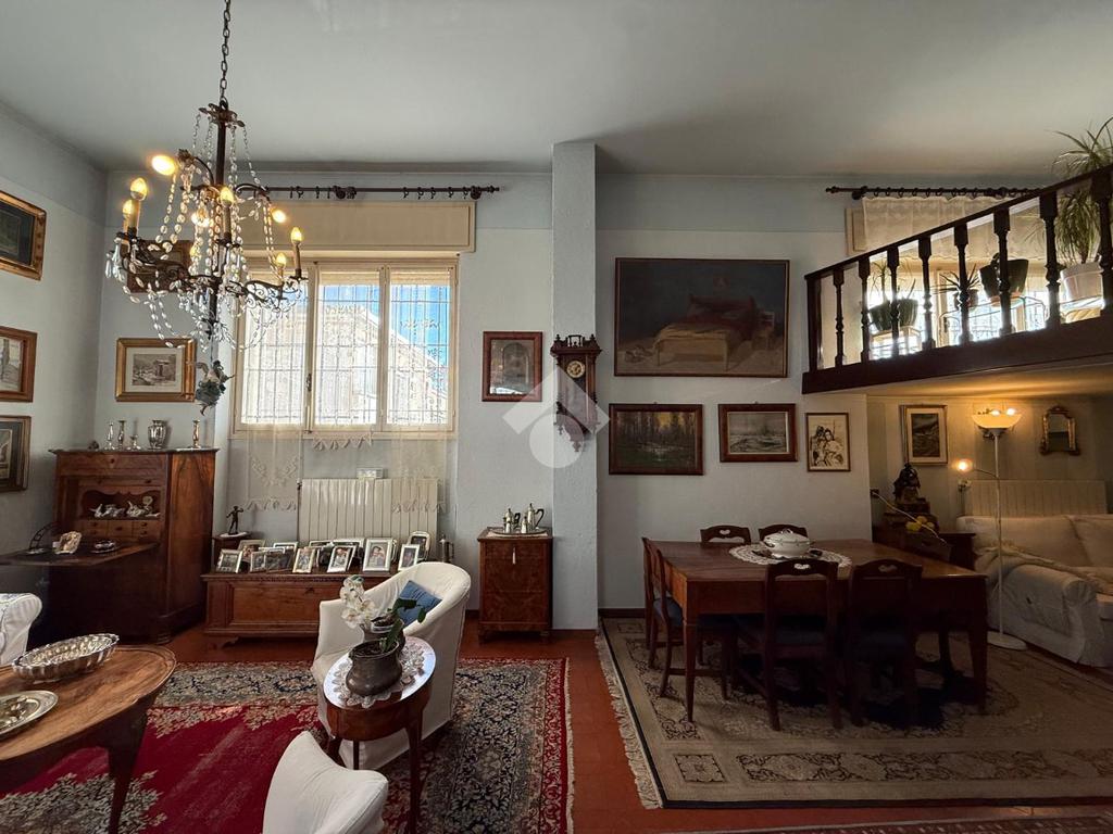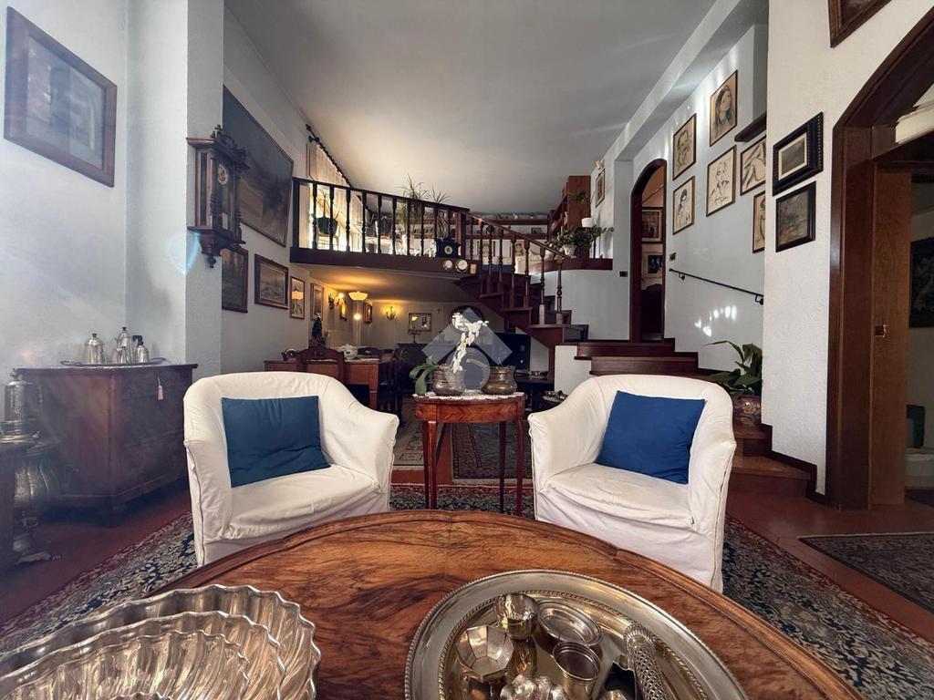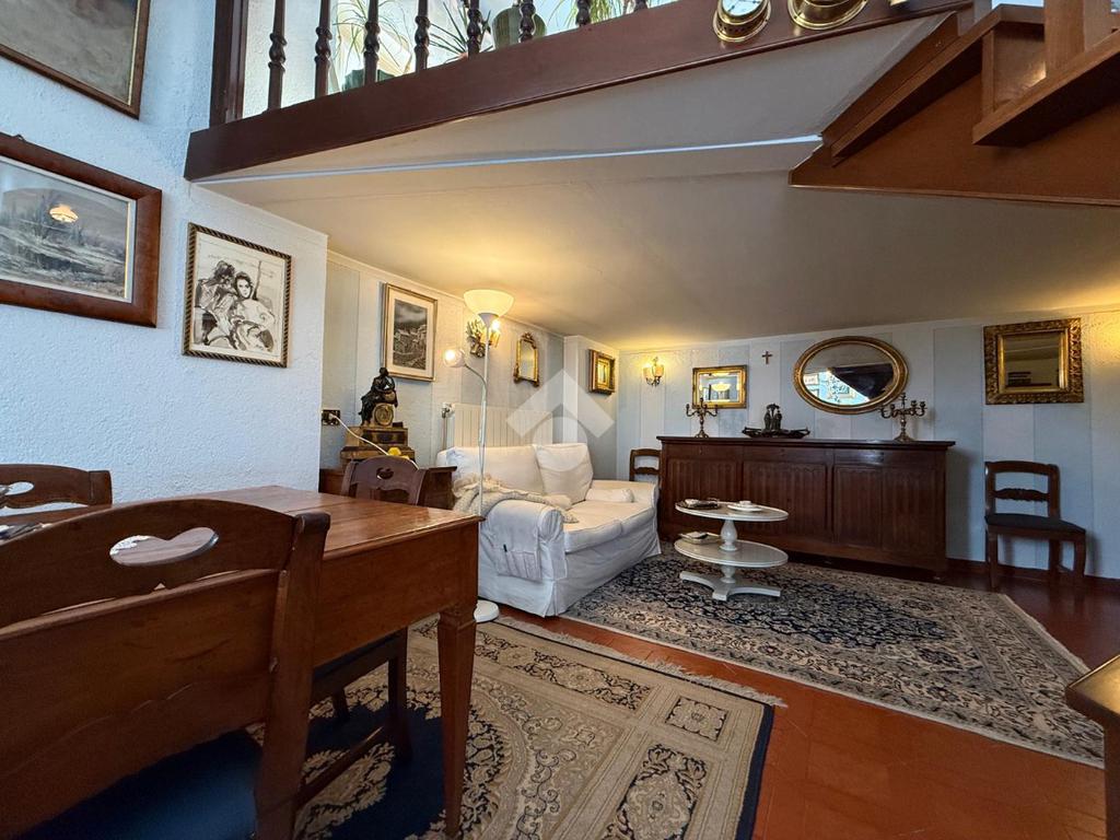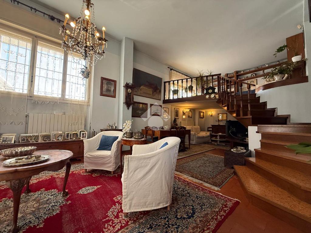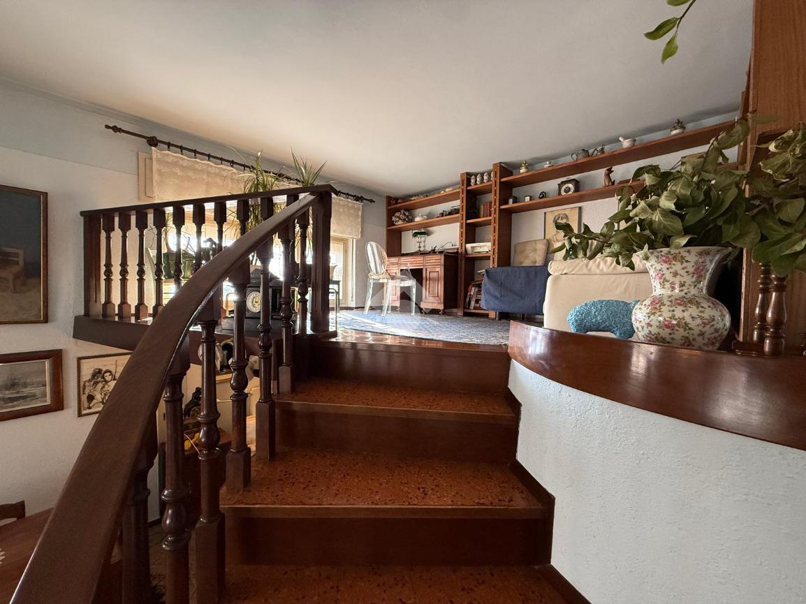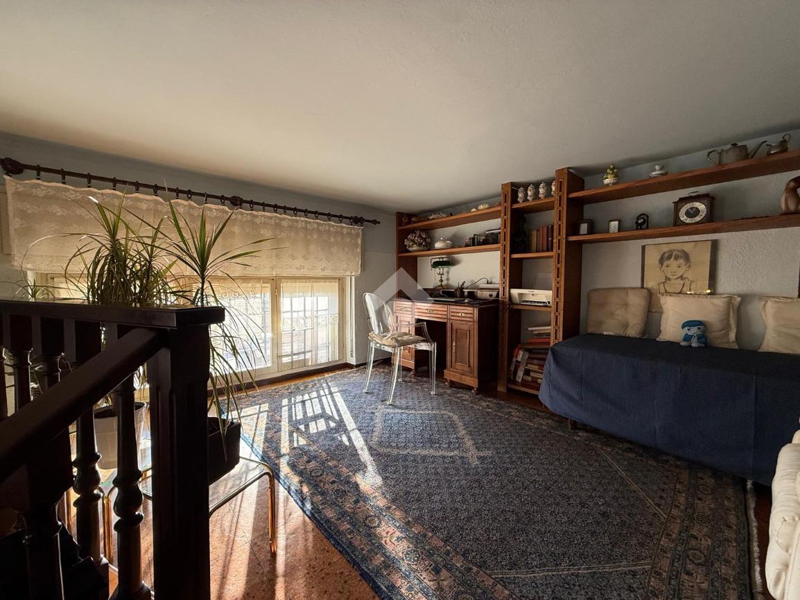 L’ingresso si apre su un ampio disimpegno che conduce al luminoso soggiorno, impreziosito da un soppalco perfettamente utilizzabile come zona studio o area relax, ideale per chi ama vivere ogni ambiente con stile e comfort.