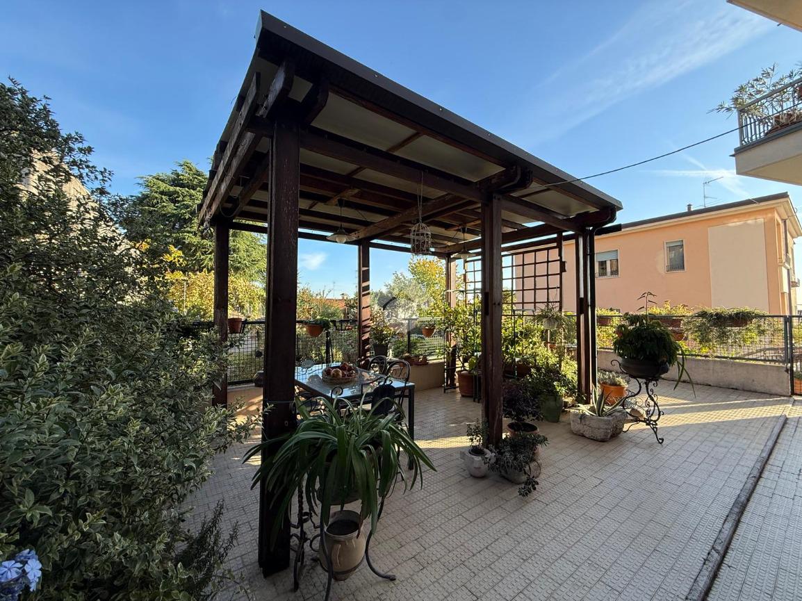 All’esterno, una grande terrazza esclusiva con veranda regala uno spazio perfetto per godersi momenti di tranquillità all’aperto o piacevoli serate in compagnia di amici e familiari.