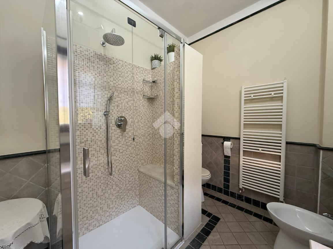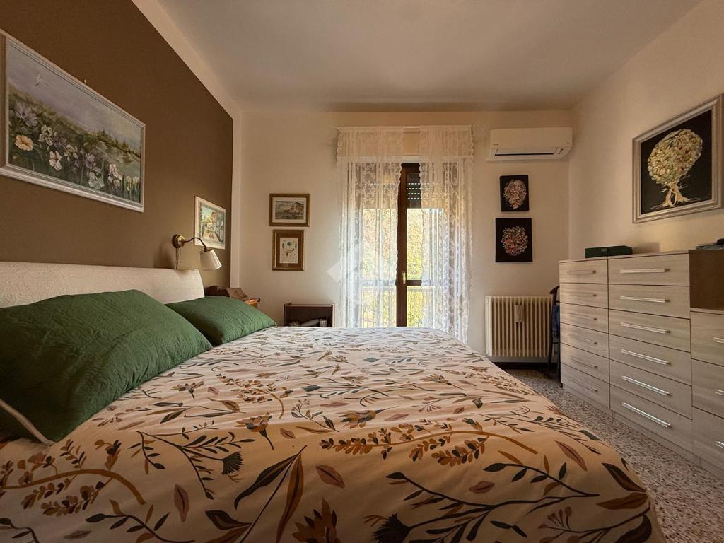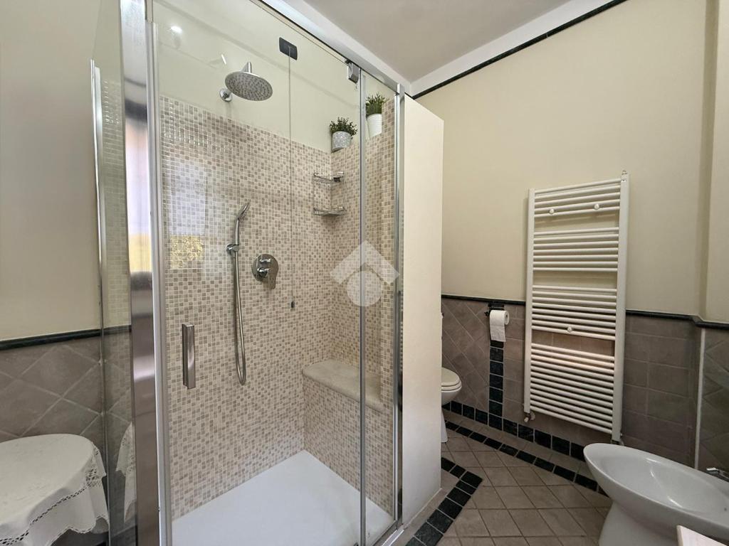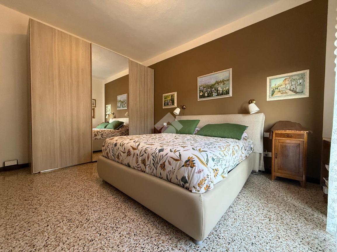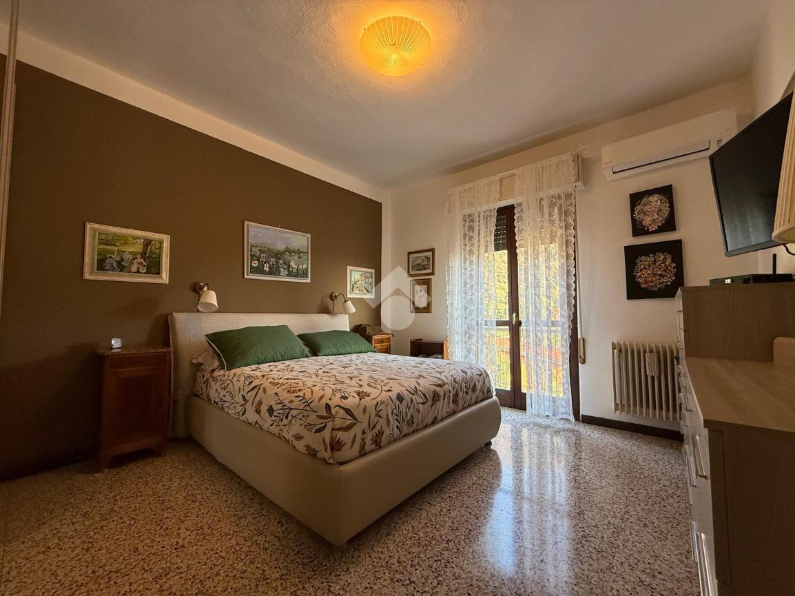 L’ingresso conduce alla luminosa zona giorno e alla spaziosa cucina separata e abitabile, dalla quale, tramite una porta finestra, si accede a una terrazza coperta con piacevole vista sul giardino. La zona notte è composta da una camera matrimoniale, due camere doppie e un bagno finestrato, ristrutturato circa dodici anni fa e completo di box doccia.